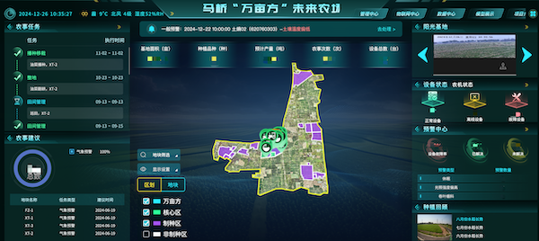 ? ? ? ?万亩方未来农场围绕 “耕、种、管、收” 这些农业生产的关键环节,依托卫星遥感、无人机遥感、地面传感系统,从“天、空、地”三域对大田进行多维度监测分析,仿佛让人看到了未来农业那充满科技感又高效有序的模样。
