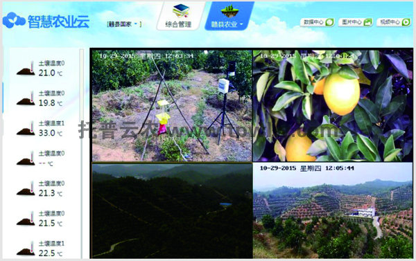 江西赣州的春秋农庄是一家集脐橙种植与销售、旅游观光为一体的绿色生态企业。农庄现种植脐橙1800余亩,在密集的橙树林间,可以看到各式各样的监测仪器,它们是浙江托普云农科技股份有限公司打造的农业物联网系统,包括小型气象站、高清摄像头和虫情测报灯等系统硬件。