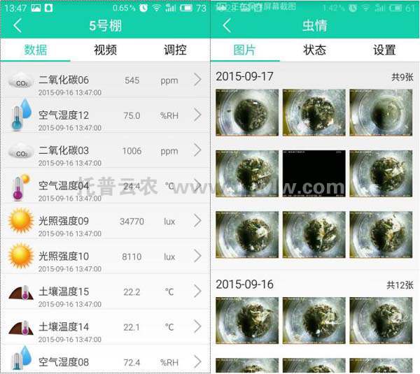 ?????? 其蔬菜基地接入空气温度、空气湿度、土壤温度、土壤水分、光照、CO2、叶面温度、茎秆微变化、温室小管家等传感设备,精确采集蔬菜大棚的环境信息和植物生理数据,采集数据可上传至智慧云平台,通过网页设置传感器上下限数值,控制风机、内外遮阳、水肥等设备,保证蔬菜最佳生长环境。大田、玉米基地、棉花基地配有气象站、虫情测报灯、植物养分测定仪、视频监控等设备,综合监测基地虫情、墒情、苗情、灾情信息。数据自动采集、远程查看,使农事操作者从繁琐、繁重的人工管理作业中解放出来,坐在电脑前,即可通过网页或手机APP轻松掌握各基地情况。