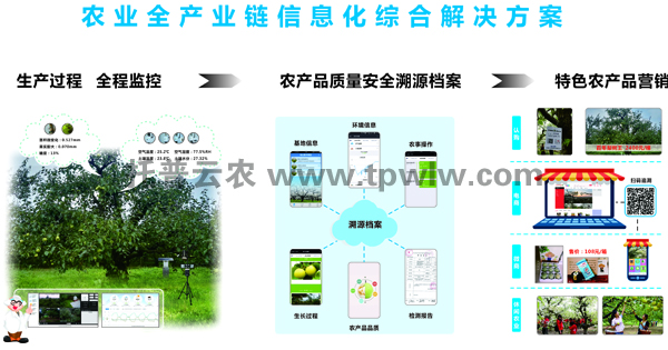 ②建立农产品质量安全追溯体系,对水果从生产到销售,全程实现数字化、精细化、智能化管理。农业全产业链信息化综合解决方案