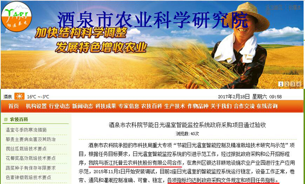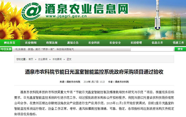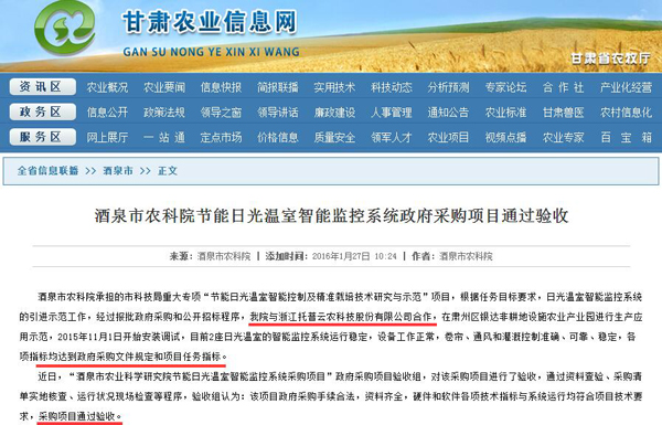 酒泉市农科院节能日光温室智能监控系统政府采购项目通过验收?