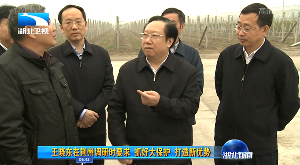 2016年11月,湖北省委副书记、代省长王晓东在荆州市市委书记李新华、市长杨智等领导陪同下莅临金秋农业智能化葡萄示范基地调研现代农业发展情况。饶有兴趣的参观了"智能化中心"水肥一体化设施,了解托普云农水肥一体化的精准生产过程。