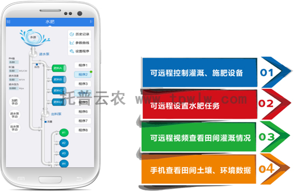 可在托普系统云平台上远程设置相应的施肥及灌溉日期、使用总量、工作时长等参数,实现区域用水、用肥的计量管理;现场安装的360°远红外球形摄像头能够清晰直观的看到基地的葡萄长势和周围的环境;还可对灌溉设施设备生成定期维护计划,记录维护情况,实现灌溉工程的精细化维护运行管理。不仅能够充分发挥现有的节水设备作用,优化调度,提高效益,更加节水节能,降低灌溉成本,提高灌溉质量,将使灌溉更加科学、方便,提高管理水平。