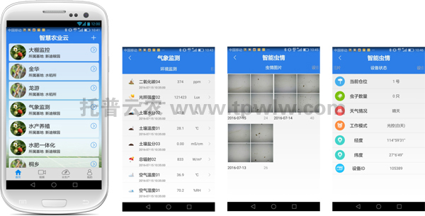 据湖南攸县植保站的工作人员介绍,该套系统由虫情信息自动采集分析系统、远程小气候信息采集系统、视频监控设备组成,可实时自动完成虫情信息、苗情信息、田间气候信息的数据采集,并自动上传至托普智慧农业云平台。托普远程可拍照式虫情测报灯可实现在无人监管的情况下,自动完成诱虫、杀虫、虫体分散、拍照、运输、收集、排水等系统作业,并实时将虫害情况上传到托普智慧农业云平台,在网页端显示识别的虫子,根据识别的结果,对虫害的发生与发展进行分析和预测。