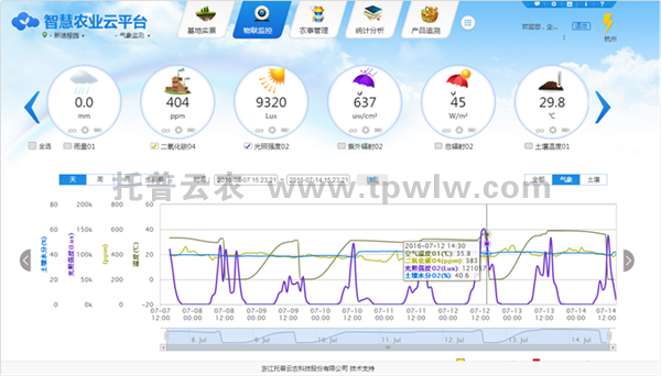 基地有机水稻种植面积达7000余亩,托普云农为其融入了水稻四情监测系统、视频监控、农事管理、气象监测等信息化管理手段?;氐牟〕婧Σ獗ǖ啤⑻锛淦笳灸芄皇迪衷谖奕思喙艿那榭鱿?,采集基地环境信息、虫情信息,并实时将环境气象和虫害情况上传到指定云平台。
