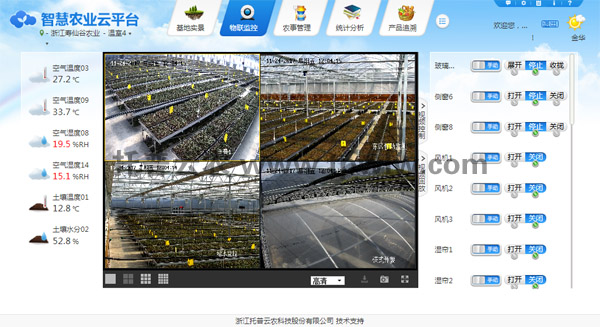 用户可远程实时通过手机APP或网页PC端查看数据及控制相关设备,也可通过视频监控系统实时查看大棚内作物生长情况。