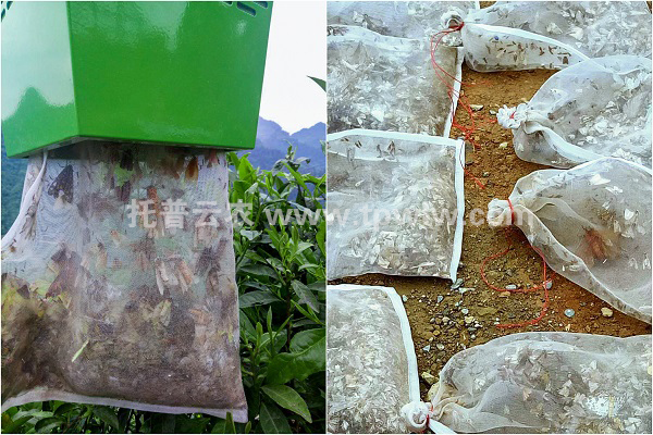 图为托普云农风吸式茶园杀虫灯有效捕杀到的茶园害虫