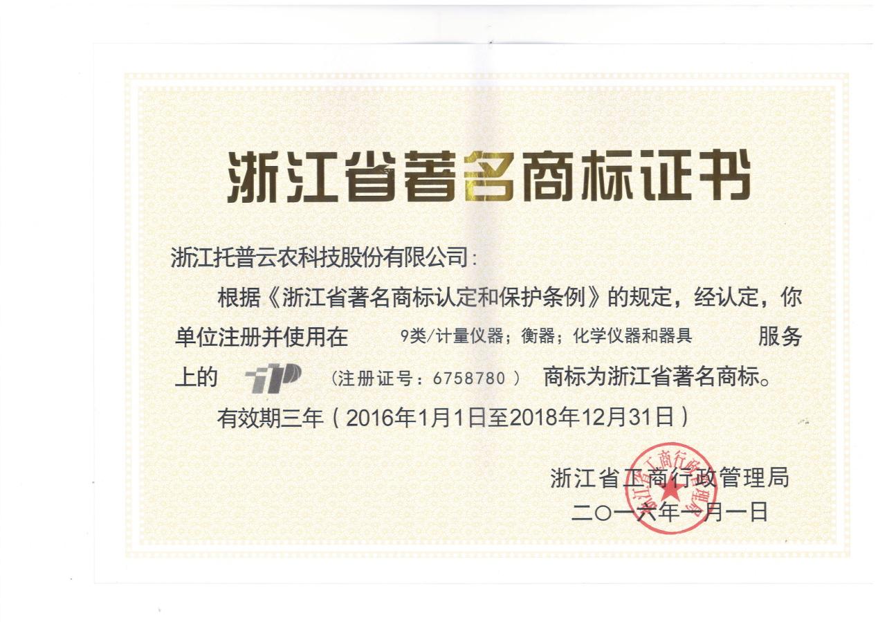 - 托普商标荣获浙江省著名商标发表日期:2016-05-10 来源:托普云农 浏览次数:3896次