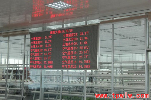 在萧山区农科所临浦基地大棚的电子显示屏上都实时显示着大棚内的空气温湿度、二氧化碳、土壤水分、土壤温度、果实膨大、作物茎杆微变化等数据。这些数据均是通过基地引进的浙江托普云农科技股份有限公司的(以下简称“托普云农”)农业物联网系统获取的。托普云农物联网系统着重解决了萧山区农科所临浦基地对育苗精细化管理的需求,使种苗的成长环境达到最优状态,提升作物品质,提高农事工作效率。