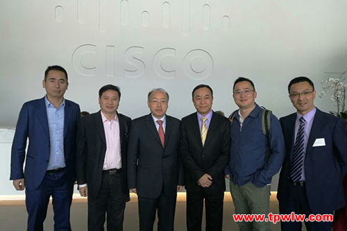 周国辉厅长(左三)、陈渝阳董事长(右一)一行在思科
