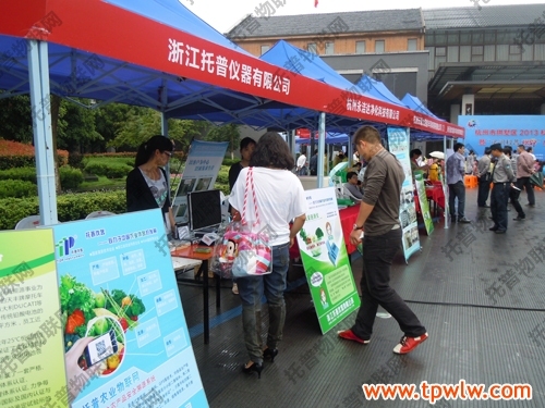 在托普展台,技术人员现场示范农药残留速测仪、糖度计等仪器的使用,并向参观者宣传食品安全方面的知识。在参观完托普的展台后,许多参观者表示现在食品安全事件频发,农药残留速测仪这类可以保证食品安全的仪器应该广泛推广,让老百姓的菜篮子拎得更加安心。