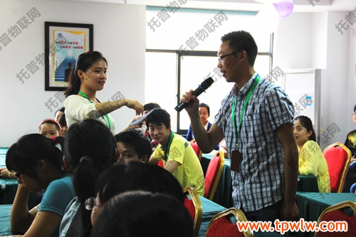 包粽子比赛之前,主持人准备了一系列知识问答,回答正确的选手,会得到小小的礼物作为奖励,回答错误的选手,则要受到小小的惩罚。在知识问答环节中,大家积极举手抢答,答对了一人拿奖一人开心,答错了接受“惩罚”,表演节目大家开心?;疃殖〔皇贝稣笳蠡缎ι?图为:知识问答环节