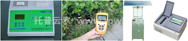 图为:土壤养分速测仪、土壤水分测定仪、交直流两用虫情测报灯、农药残留速测仪