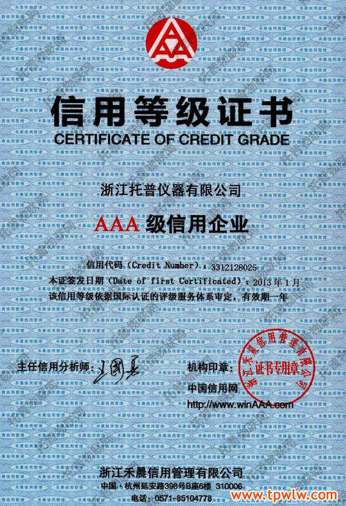 到目前为止,未发现本公司在工商、税务、法律诉讼等部门有任何与之相关的不良记录存在,而且在省财政厅采购监督管理处也未发现本公司有任何相关不良处罚记录,最终确定本公司2013年信用级别为AAA级级信用企业。