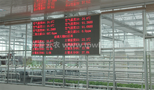 智慧农业温室大棚信息展示屏用于展示农业大棚内各无线传感器采集的环境数据和现场场景;同时展示屏也是展示智慧农业的一个窗口。温室大棚无线监测系统实现了对影响农作物生长的环境传感数据实时监控智能调节,采集现场的传感信号包括:空气温湿度、光照、土壤温度、CO2 浓度、土壤水分等,并实时准确的输出指令智能控制包括大棚风机、微喷罐、滴灌、卷帘机、补光灯、CO2 发生器、CO2风机等现场设备。同时支持远程无线信息传输功能,可配专用的摄像装置,实现对现场农作物和环境真实状况呈现。