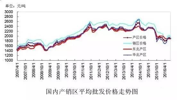 8月下旬,东北此前干旱的地区迎来降水,同时台风“狮子山”过境进一步增加了降水,对东北玉米灌浆成熟十分有利。后期玉米单产将主要依赖于灌浆情况。总体上看,8月份干旱对东北玉米单产的负面影响低于此前预期,单产预计同比提高。8月底,东北地区春玉米处于灌浆成熟期,我国西南地区和长江流域玉米已经成熟收获;华北地区春玉米零星上市,夏玉米处于灌浆成熟期。中央气象台报告显示,当前我国东北、华北等玉米主产区土壤水分条件良好,东北地区气温回升,水热匹配良好,有利于玉米单产提升。国家粮油信息中心9月份预计,2016年全国玉米平均单产为6.054吨/公顷,较上年增长2.7%。其中,东北地区单产为6.662吨/公顷,较上年增长3.7%。预计2016年我国玉米播种面积为3626万公顷,较2015年下降4.87%;预计2016年我国玉米产量为21950万吨,较2015年下降2.26%。