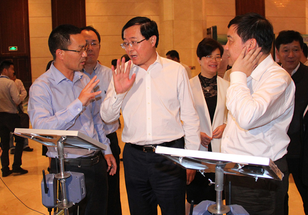 浙江省委副书记、代省长车俊一行也莅临托普云农展区,公司董事长陈渝阳、常务副总朱旭华向车省长介绍讲解了公司物联网项目的实施应用情况以及现阶段在现代农业领域取得的成绩,得到了车省长的肯定与赞许。