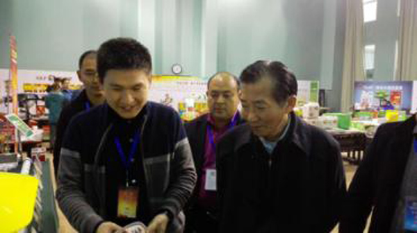 农业部陈晓华副部长(右一)在托普云农陈曦总监(右二)的陪同下参观展位