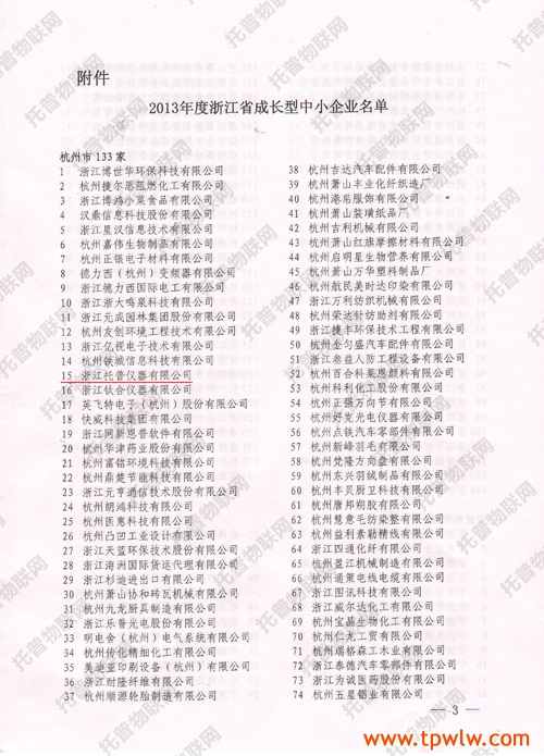 图为:2013年度浙江省成长型中小企业名单(托普仪器在第十五位红线处)