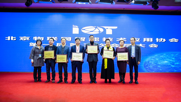 图:托普云农副总经理(左三)带公司领取北京物联网智能技术应用大会会员证书