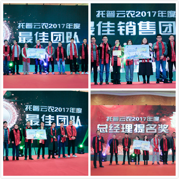 农业信息化是农业现代化发展的基础。过去一年,托普云农在农业信息化的道路上屡获农业部门和行业的认可。凭借前沿的技术研发与落地应用能力,先后荣获世界物联网博览会、匠农杯等业内顶级大奖。在荣耀的成绩背后,离不开一大批优秀员工和团队的辛勤付出。针对2017年表现突出的团体和个人,现场颁发出年度销售精英、创新改善、优秀员工奖、最佳新锐奖等个人奖项以及最佳团队、总经理提名等团队类奖项。