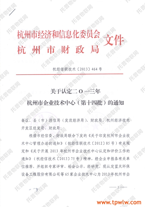 - 托普仪器被认定为杭州市企业技术中心发表日期:2013-12-04 来源:托普云农 浏览次数:3897次