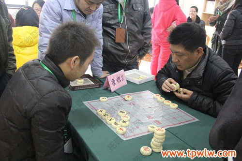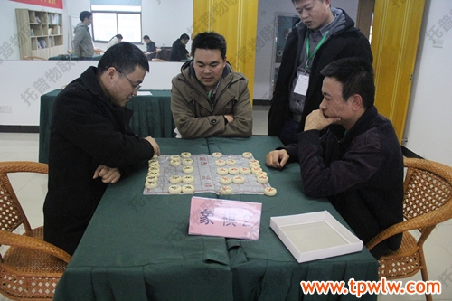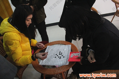 相比起企业学院球赛的热闹,在员工之家进行的棋类比赛就相对安静了,但比赛的紧张氛围并没有因此而减弱。图为:托普仪器张总和罗经理正在进行五子棋的比拼