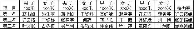 此次田径运动会分为男子100米、女子100米;男子400米,女子400米;男子1000米,女子800米;男子3000米,女子3000米;男女混合4*200米接力赛。赛制为,初赛?。孔槿∏傲矫统杉ㄗ詈玫牧矫擦嗽苯刖鋈┣叭刖鋈?,决赛取前三名为获奖选手。上午9:10,运动会在女子400米初赛中拉开帷幕。图为:跑道上的精彩瞬间