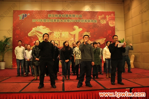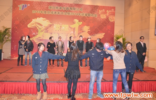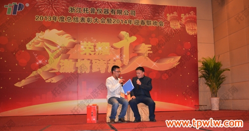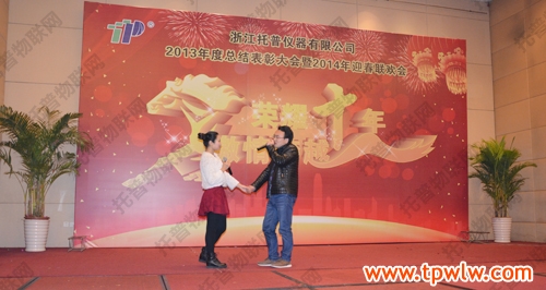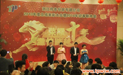 - “荣耀十年、激情跨越”之托普仪器2013年年终晚会发表日期:2014-01-27 来源:托普云农 浏览次数:3819次飞雪送蛇归,骏马迎春来。2014年1月24日六点整,在一片欢乐祥和的气氛里,“荣耀十年、激情跨越”之托普仪器2013年年终晚会缓缓拉开序幕。托普仪器260余人的大家庭齐聚一堂,庆祝托普十年华诞,庆祝一年的工作成果,庆祝除旧迎新。晚会伊始,托普仪器陈渝阳总经理上台为本次晚会致开幕词,为即将到来的马年向所有托普家人致以新春的问候。