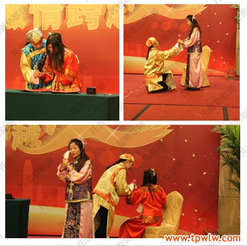 除此之外,为庆祝托普十年华诞,各部门纷纷献上准备多日的节目。金曲、小品异彩纷呈,戏曲、舞蹈惊喜连连。期间,公司特别安排了四轮抽奖,特等奖“海尔电冰箱”最终由市场部同事梁倩莲摘得,陈总亲自上台颁奖,并为活泼爽朗的小梁送上了新年祝福。从三等奖到特等奖,共有20位幸运的托普家人荣获大礼。图为:歌舞《群英荟萃》