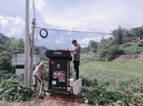 总而言之,目前我国粮食生产形势依旧严峻,重大病虫害的防控不容懈怠。 6月30日,托普云农售后服务部的工作人员在云南省江城县完成了最后一台高空测报灯的安装,代表着托普云农顺利完成了本次农业农村部下达的“三区三带”布防任务。 高空测报灯是一款利用灯诱吸引迁飞性虫害的测报灯,针对草地贪夜蛾的生物习性做了技术匹配与功能优化,可在防控工作当中辅助植保人员完成草贪测报工作,为全国布防一盘棋做好基层数据采集工作。