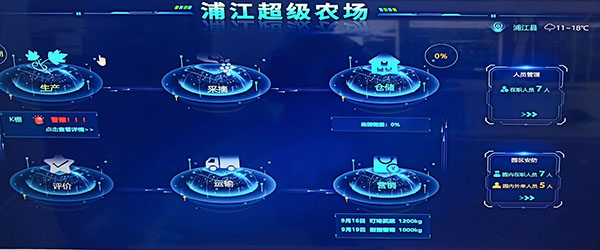 葡萄是浦江农业第一大产业,已有500多年种植历史。目前,浦江有超过1.2万户葡农,葡萄种植面积7万亩,年产量12.7万吨,年产值超11.4亿元。如何让葡农更轻松地种出优质葡萄,浦江建设了“超级农场”项目,通过人工智能技术的创新应用,服务产、供、销全环节,并在岩头镇十里阳光葡萄园展开试点。