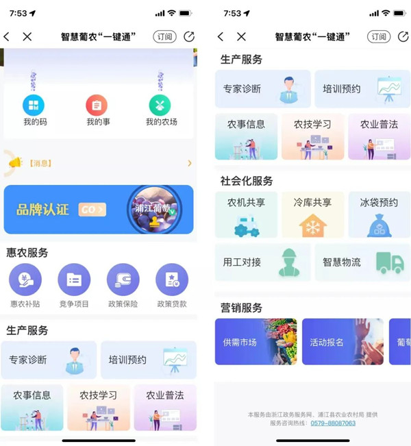 应用已经在“浙里办”、“浙政钉”上线。截至目前,注册用户10307人,累计服务6470人次,提供涉农咨询服务1132次、社会化服务1910次。这个全国首创的葡萄产品线上品牌管理,已经辅助100家农户获得优质品牌授权,优质葡萄追溯码赋码2万余次,助力优质浦江葡萄销售5万余斤,实现均价提高2元以上。