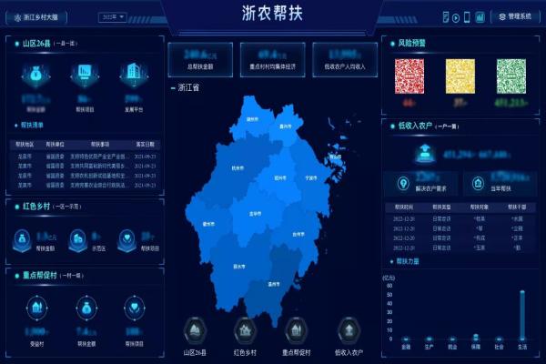 通过长效机制防返贫,保证脱贫成效持续稳定发展,是国家乡村振兴局五年过渡期的主要任务。张桂华局长一行重点关注了浙江乡村大脑和被评为2022年度数字社会系统“最佳应用”的浙农帮扶,肯定了浙农帮扶应用“输血+造血”扶智长效机制,以及“一县一团、一村一组、一户一策”新型帮共体建设。张局长一行现场体验了浙农帮扶针对低收入农户群体的风险识别预警、干部帮扶、风险解除等应用场景。