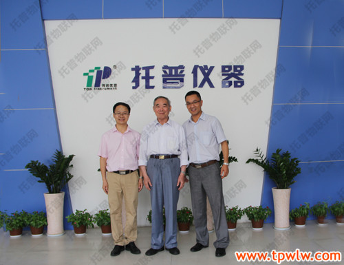 图为:陈耀邦部长(中)、托普仪器陈渝阳总经理(右)、朱旭华副总经理(左)合影