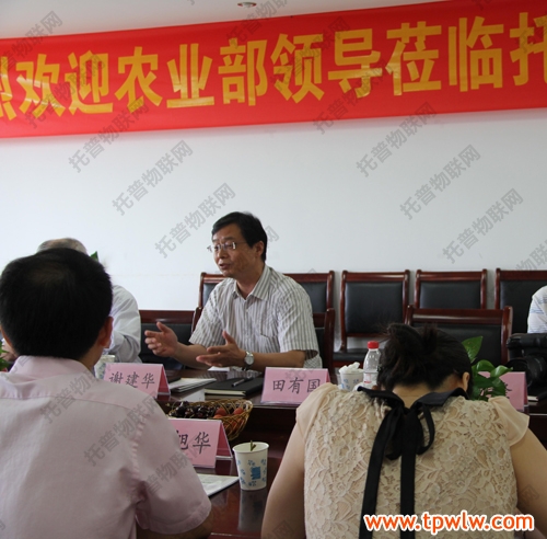 调研座谈会上,谢建华副主任对托普几年来的成绩表示肯定。他指出:“托普仪器农业仪器设备的发展从2004年到2014年经过了10年发展,农业信息化技术从2008年到2014年也发展了6年,获得了大量的研发成果和积累了丰富的经验。从仪器展览室的展出情况来看,公司大部分仪器实现了数据的自动监测、保存与读取,这对于农事研究来说是一个重大突破?!?br /> 同时就行业现状,谢主任也指出,信息化技术值得深入研究与推广?!霸谕寥赖准睾康牟馐灾?,研究人员要取样、化验、数据统计、分析、制表整理与汇报,而托普仪器土壤养分仪简化了测试全过程,使实验变得轻松,可以继续完成更多的工作。在新的历史阶段下,农业科技型企业要持续农业技术创新,与农业现代化同步推进。就另一方面而言,无论是基层农技推广还是信息化系统建设,都是一个漫长的过程。企业间不乏整体实力俱佳者,也不乏专项研发生产仪器设备的强者,除了加强产学研模式外,在行业内也要加强企业间的联盟与合作,强强联手,求同存异,共同迎接挑战?!?br /> 托普仪器陈渝阳总经理对谢建华副主任关于仪器设备和信息化系统建设的肯定表示感谢,并谨记其建议,以发展农业仪器、农业信息化为己任,打造适用于农业技术推广体系的农业生产管理全程信息化系统。图为:谢建华副主任在座谈会上讲话