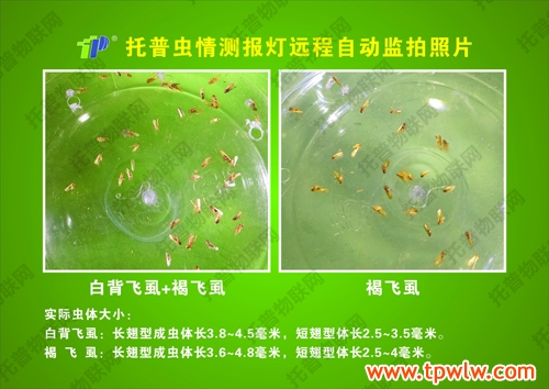 除了新仪器的展示,虫情测报灯、农药残留速测仪、杀虫灯、孢子捕捉仪等经典仪器依旧占据着展出的重要席位。值得一提的是,虫情测报灯经过重新研发升级,不仅可以更精准的测报病虫害信息,还可连接“托普植保信息化系统”(农业物联网系统),通过仪器内置1800万高清摄像头,及时上传虫情图片。根据最新技术反馈,可轻松识别稻飞虱种类。图为:虫情测报灯及其拍摄图片展示