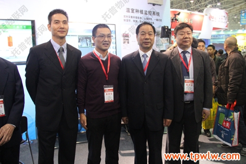 展出期间,农业部种植业管理司陈友权副巡视员,全国农技推广中心陈生斗主任、杭大鹏书记一行莅临托普展位,对虫情测报灯的新功能、新技术赞许有加。陈友权副巡检员表示,植保工作是一个长期积累和革故鼎新的工作,通过先进的仪器设备防虫治虫,减少农药的使用量,不仅使作物健康生长,同时也?;ち嘶肪澈蜕锏亩嘌?,一举多得,值得提倡。图为:陈渝阳总经理与农业部种植业管理司陈友权副巡视员(右一)、