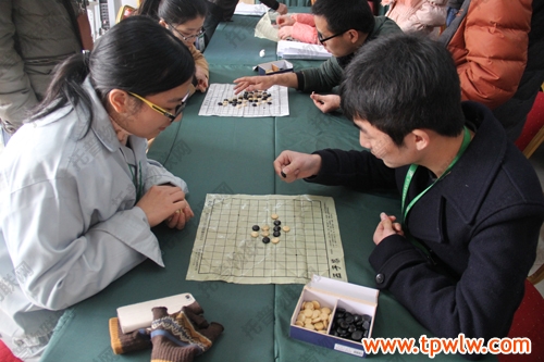 图为:五子棋冠军-邵伟栋(左)与亚军-王姿舒(右)比拼