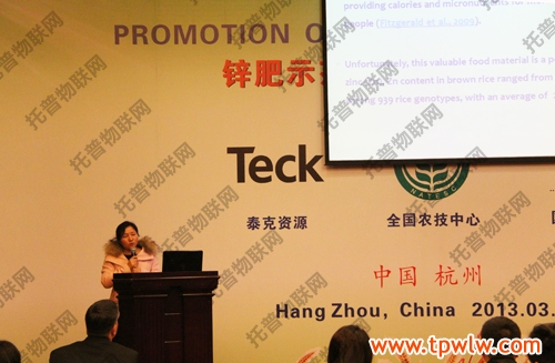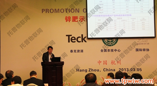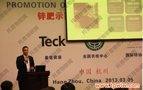 在上午的锌肥示范推广技术培训与研讨会上,会议邀请了国际专家加拿大泰克资源安德鲁·格林教授、国际锌协会樊明宪教授、国内专家浙江大学副教授冯英、天津市土壤肥料工作站郑育锁科长讲解了锌肥技术以及锌肥在中国农业生产中试验示范研究结果。据国际锌协会报道,全球种植谷物的土地中有50%存在缺锌的潜在危险、而我国土壤普遍缺锌。农作物缺锌主要与干旱缺水、盐碱、渍涝等农田环境有关,科学施用锌肥是解决农业缺锌问题的主要途径。近年来,随着节水农业的不断发展,水肥一体化逐渐成为新的锌肥科学施用方式??蒲┯眯糠?,能够提高作物产量,改善农产品品质。为促进锌肥的科学施用,广泛宣传锌对作物生产和人体健康的作用,全国农技推广中心与国际锌协会、加拿大泰克资源合作开展锌肥示范推广工作,并大力培养应用技术人才、开展田间技术指导。