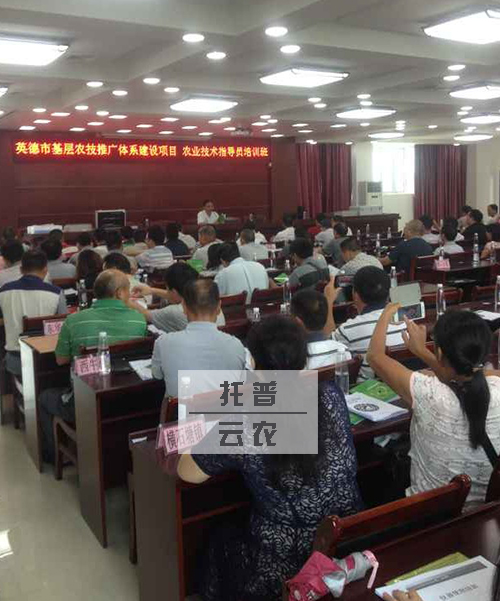 8月19日上午,浙江托普云农科技股份有限公司(以下简称“托普云农公司”)售后部工作人员在英德市对该市农业技术指导员进行基层农业产品的培训。英德市农业局副局长李政文主持培训会议,24个镇(街)农技指导员、农业检测仪器管理员,英德市农业局科教股、英德市现代农业协会全体人员共计150人参加了培训。