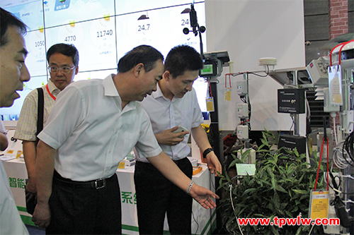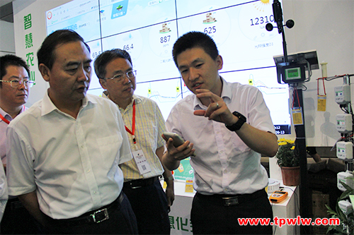 图为:省政协副主席兼省政府秘书长邵国荷先生、赵颖南总农艺师参观托普云农展区图为:安徽省农委孙正东主任观摩托普云农传感器设备