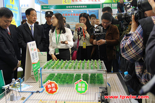 托普云农展出信息化系统和监测检测仪器不仅吸引了专业观众的眼球,也迎来了与会领导的参观指导。全国农业技术推广服务中心陈生斗主任、谢建华副主任一行莅临托普云农展区,观摩了公司展出的水肥一体化智能监测系统和土壤墒情监控预警平台与设备,并且与托普云农营销总监陈丽婷亲切交流。