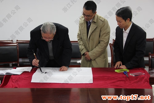 图为:陈子元院士为托普题词并与陈渝阳总经理、朱旭华副总经理合影留念随后,陈子元院士在陈渝阳总经理的陪同下出席了托普仪器全国经销商见面会并作寄语?;嵋樯希略菏渴紫瓤隙送衅粘掠逖糇芫砀鋈说某删?,他说到:陈渝阳毕业于浙江农业大学,并且通过自己不懈的努力,结合国家宏观政策对农业的大力支持,结合自己所学的专业知识,在大家的共同支持和帮助下,既开拓了自己的事业空间,更可贵的是通过他的努力与实践,也在很大程度上丰富了我们原先薄弱的农业仪器设备,要知道这也是解决“三农”问题的有力措施,对推动农业现代化具有明显的助推作用。