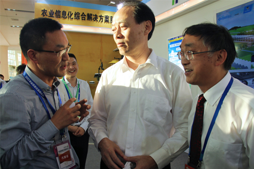 农交会期间,农业部余欣荣副部长、农业部市场与经济信息司王小兵副司长一行莅临托普展区参观指导。余副部长表示,农业物联网技术应用除了现有的系统及硬件以外,还要与射频技术紧密结合,提高物联网的科技含量。屈冬玉副部长和斯洛文尼亚副总理一行也莅临托普展区,并与陈渝阳总经理亲切交谈。双方就农业物联网的研发推广以及落地应用等问题进行交流。