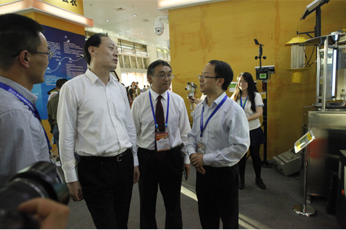 图为:余欣荣副部长和王小兵副司长一行莅临托普展区