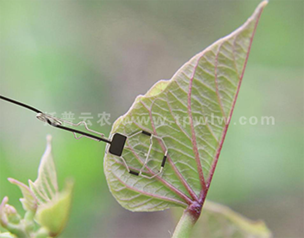 2.打开上、下夹使传感器与叶子固定,且需要将传感器探头(电热调节器)置于叶子背阳面且充分接触,安装时应避免经常按、压探头,如野蛮操作可能导致损坏。