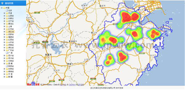 平台将灾情按严重程度分为不同颜色,并在省级行政图中以点的形式表示,只要一打开平台的行政区域图,即可直观显示省内各区域的墒情情况如何。