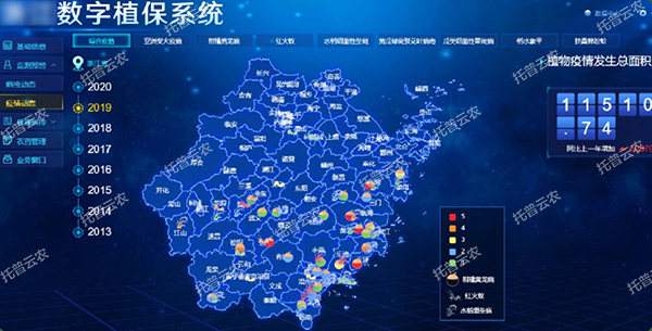 植物检疫:密切关注追踪本省重点检疫性有害生物,如亚洲梨火疫病、柑橘黄龙病、红火蚁等,以五色图、数据列表、折线图等多种形式展示各市县疫情发生和防治情况,以及疫情发生等级和严重程度,多年数据比对分析,防止有害生物疫情扩散蔓延。