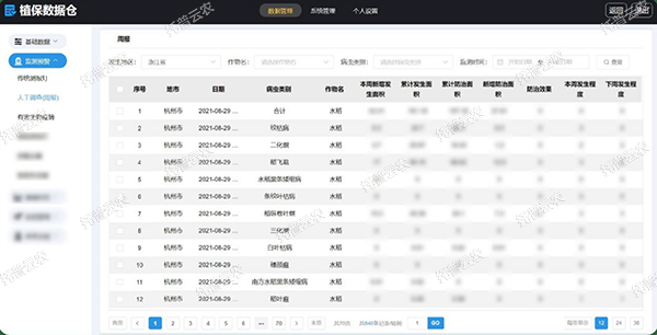 植保数据仓:采集全省农业生产经营主体、农资生产经营企业、植保工程(植保测报点、疫情监测点)以及农药生产使用废弃物等数据。实现一体化数据填报和省市县三级业务贯通,解决人工填写、人工统计、重复填报、层层上报的难题。